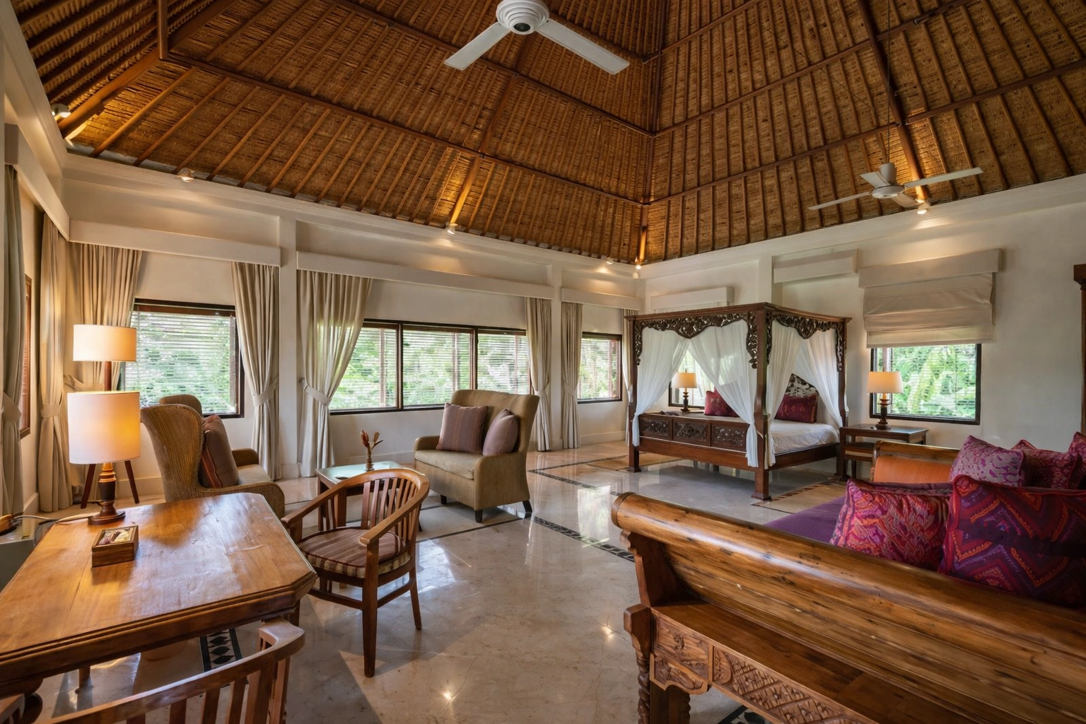 Memiliki aset di Tegallalang bukan sekadar tentang investasi properti, melainkan tentang memiliki bagian dari salah satu pemandangan paling terkenal di dunia. Villa mewah ini berdiri di atas lahan yang sangat luas, mencapai 5.500 meter persegi (55 are), memberikan tingkat privasi dan ketenangan yang luar biasa di tengah asrinya alam Ubud. Dengan total 6 kamar tidur yang elegan dan 6 kamar mandi mewah, properti ini dirancang sebagai hunian peristirahatan kelas atas atau instrumen bisnis hospitality yang menjanjikan. Bangunan ini hadir dalam kondisi siap huni (fully furnished) dengan sentuhan interior yang berkelas, menjamin kenyamanan maksimal bagi pemilik maupun tamu yang mendambakan pengalaman tinggal di Bali yang autentik namun tetap modern.