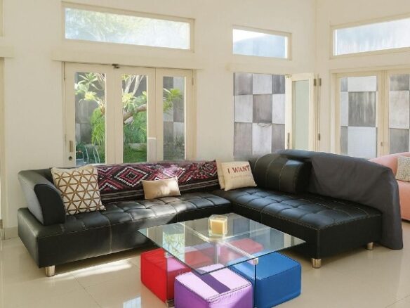 Area ruang tamu dirancang luas dan nyaman sebagai pusat aktivitas keluarga, sementara dapur telah dilengkapi dengan kitchen set lengkap untuk menunjang kebutuhan sehari-hari. Interior villa dijual dalam kondisi fully furnished sehingga siap langsung ditempati tanpa perlu tambahan renovasi atau pengadaan perabot.