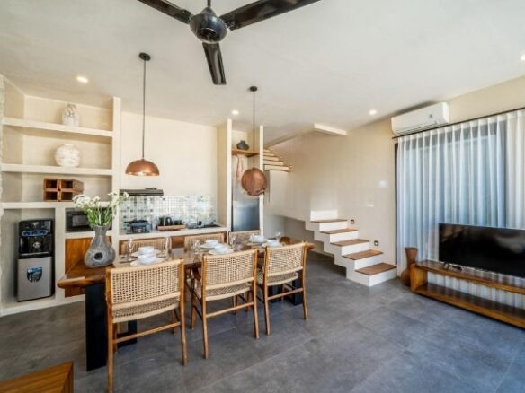 Dibangun dengan konsep modern tropis, villa dua lantai ini berdiri di atas lahan seluas 100 m² dengan luas bangunan sekitar 120 m². Tata ruangnya dirancang efisien dan fungsional, memberikan suasana hunian yang nyaman baik untuk tempat tinggal pribadi maupun sebagai villa sewa di kawasan wisata.